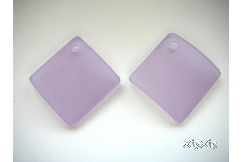 2 Stück quadratische Meerglas Anhänger in fliederfarben Der Anhänger ist leicht gebogen. Dieses Meerglas wurde rein mechanisch hergestellt aus Recycling-Glas.
