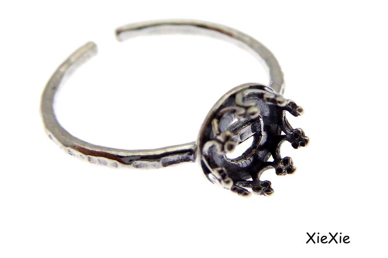 2 Stück 925 Sterling Silber Ring Rohling mit einer *6mm* Fassung antik silberfarben