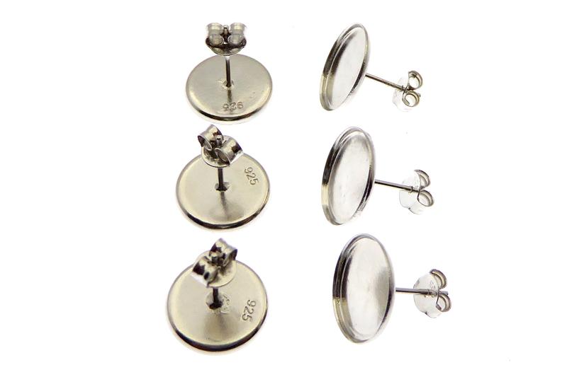 3 Paar (6Stück) 925 Silber Ohrstecker mit mit Rand für runde Steine.