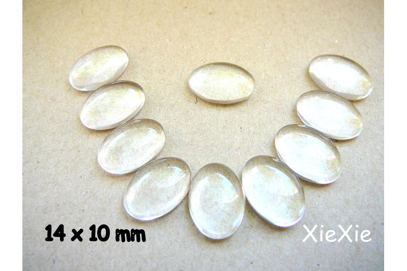 50 Stück glasklare Cabochons aus Glas mit einer Größe von 14 x 10 mm oval