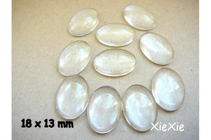50 Stück glasklare Cabochons aus Glas mit einer Größe von 18 x 13 mm oval