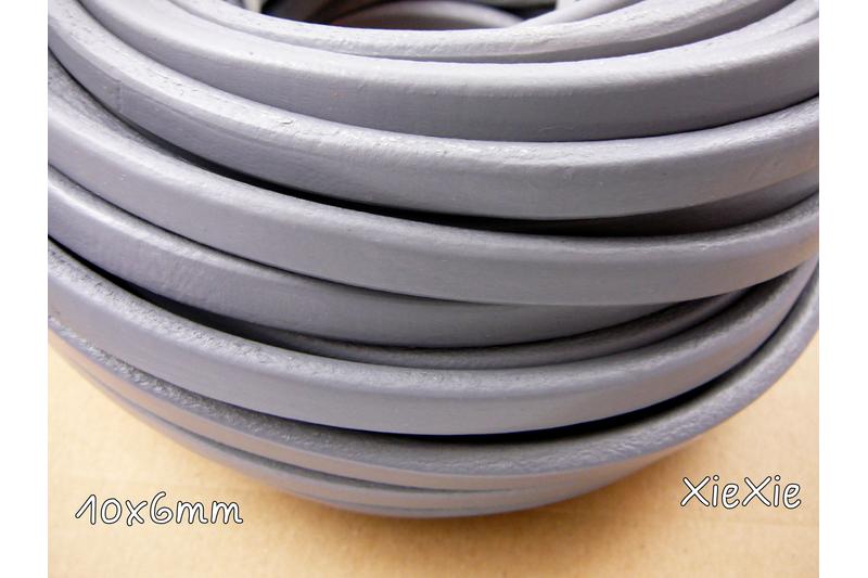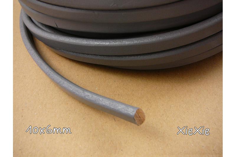 1m Regaliz Lederband 10x6mm grau