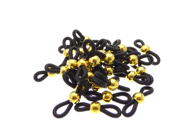 30 Stück Verbinder für Brillenbänder Brillenöse Brillenschlaufe goldfarben Perle mit schwarzen Gummi
